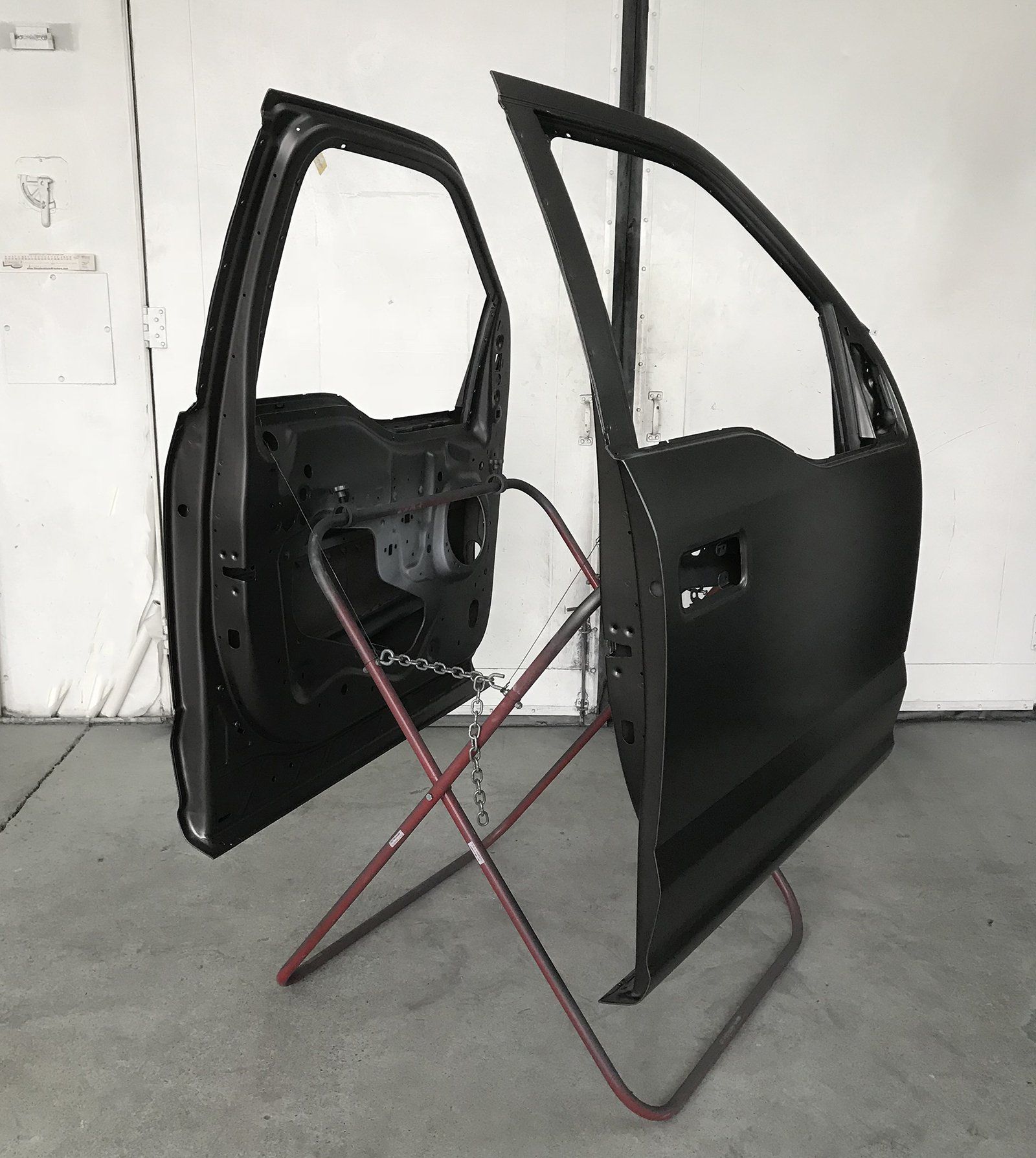 The 2DS will hold two door shells to be seated and painted inside and out, all at once.